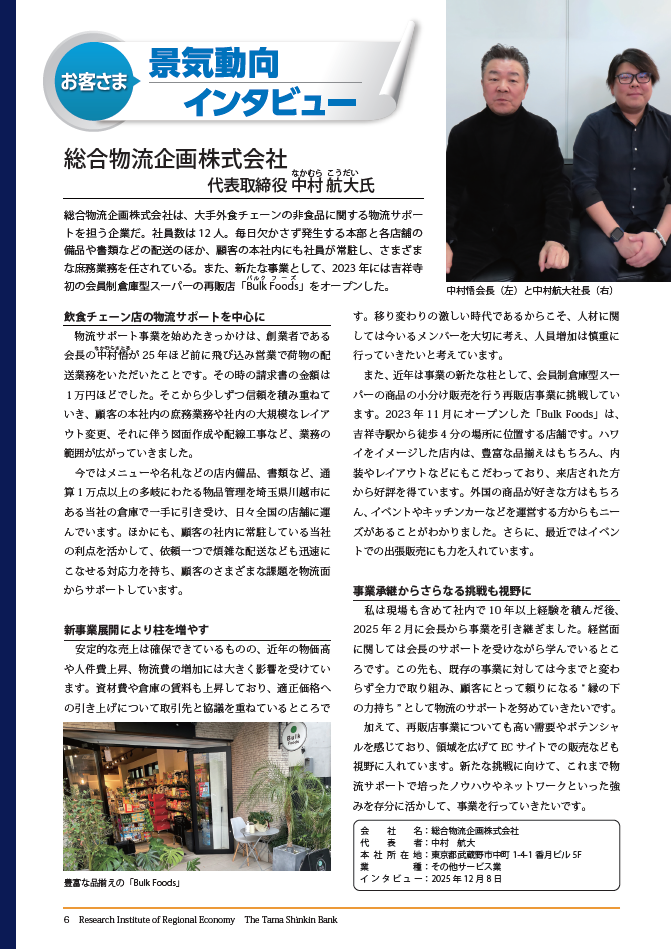 お客さま景気動向インタビュー 株式会社サン・エキスプレス、遠藤商事株式会社 |