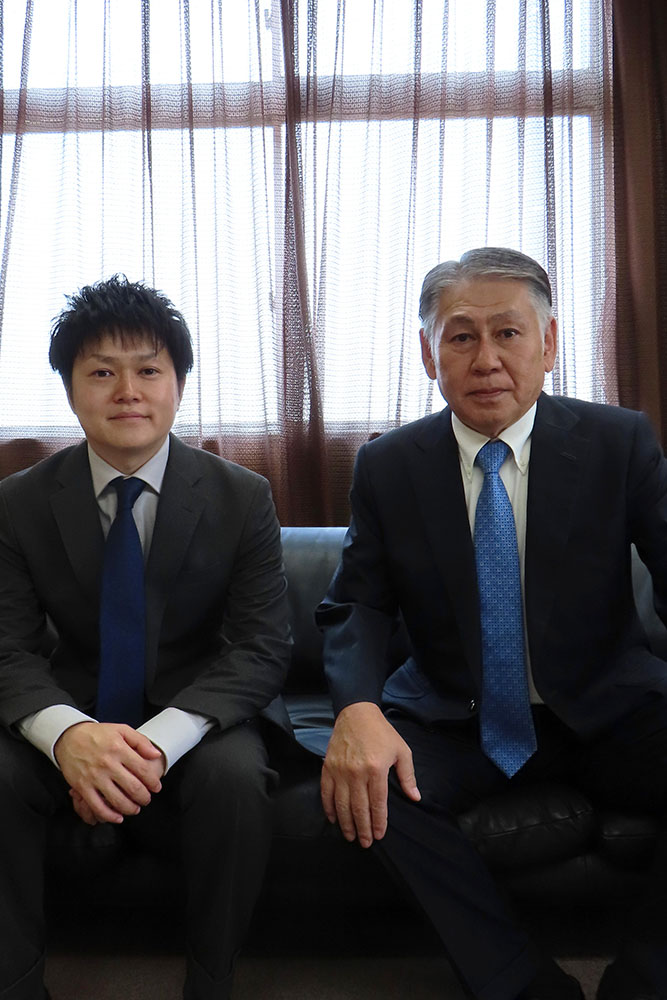 三田稔晃専務(左)と三田喜孝社長(右)