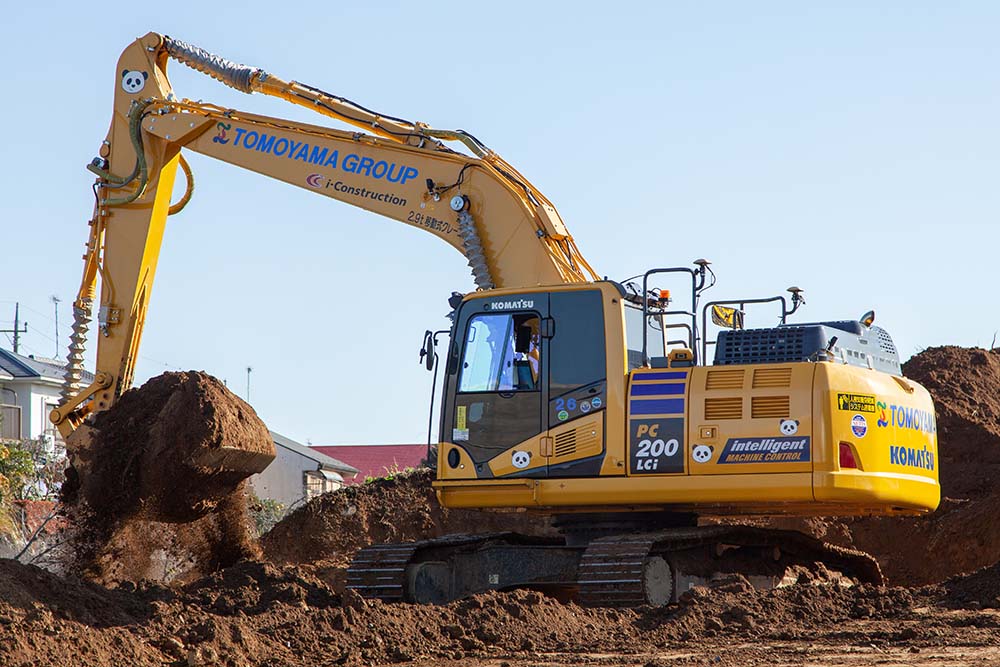 トレードマークのパンダがプリントされたショベルカー